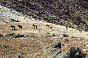 The Mongolian Government declared Hustai National Park as a Specially Protected Area in 1993, one year after the initiation of the reintroduction project of the Takhi[2] (Przewalski's horse) to the Hustain Nuruu. The HNP extends through the Khentii Mountains and includes the western edge of the Mongolian steppe at the boundaries of Altanbulag, Argalant and Bayankhangai Soums of Töv Province. The park is about 100 km from the capital city of Ulaanbaatar to the west.[3][4]