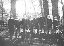 In 1828 the Wilkins building on the south side of the court opposite the chapel was opened and the school was housed in rooms within it.[3] By the 1870s in response to improving musical standards in other English choirs, it was decided to open a boarding house to accommodate choristers from outside Cambridge in order to widen the field from which selection of choristers could take place. This was opened on the current site in West Road in 1878, and by 1880 all 16 choristers were boarders, and there were also 8 non-chorister day pupils, a number that would gradually increase over the coming decades.[3] From 1976 girls were admitted, and as the school expanded, it opened a pre-preparatory department.[6]