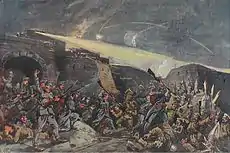 During the First World War Galicia saw heavy fighting between the forces of Russia and the Central Powers. The Russian forces overran most of the region in 1914 after defeating the Austro-Hungarian army in a chaotic frontier battle in the opening months of the war. They were in turn pushed out in the spring and summer of 1915 by a combined German and Austro-Hungarian offensive.
