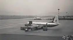 According to passenger testimony, one of the passengers rose from his seat 10 minutes after takeoff and entered the cockpit, following which the aircraft changed direction and was joined by three Korean People's Air Force fighter jets.[4] The aircraft landed at Sǒndǒk Airfield near Wonsan at 1:18 pm.[5] North Korean soldiers boarded the aircraft afterwards, blindfolded the passengers, and instructed them to disembark.[4] The aircraft was damaged beyond repair on landing.[1] A member of the United States Air Force in South Korea was scheduled to be a passenger on the ill-fated flight, but instead caught a military transport flight at the last minute.[6]