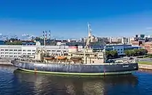 Between August 1953 to June 1960, under the East German war reparations program, Krassin was extensively reconstructed at VEB Mathias-Thesen-Werft, Wismar, Germany.[3] Until 1971 she served the Arctic Northern Sea Route. Then the icebreaker was used as an Arctic scientific vessel.[8] The icebreaker was owned by the International Fund for the History of Science. [5] Arkady Melua, as a president of the International Fund for the History of Science, took part in the transfer of the icebreaker "Krasin" to the balance of the fund. The transfer took part on August 10, 1989. The icebreaker was then used for the import of used cars from Europe to Russia, and then was sold by Melua to the JSC "Tehimeks." JSC "Tehimeks" planned to sell the icebreaker to the United States of America to be broken up as scrap metal. After the failure of the deal caused by the Russian government it was registered at St. Petersburg, where it was docked as a floating museum.[3]