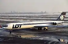 ![]() SP-LAA, the aircraft involved in the accident, on the apron at John F. Kennedy International Airport in 1979. | |
