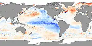 - "Current map of sea surface temperature anomalies in the Pacific Ocean". earth.nullschool.net.