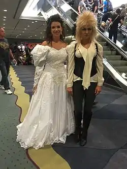 At the early stages of filming, stars Connelly and Bowie found it difficult to interact naturally with the puppets they shared most of their scenes with. Bowie said, "I had some initial problems working with Hoggle and the rest because, for one thing, what they say doesn't come from their mouths, but from the side of the set, or from behind you."[31] Connelly remarked, "it was a bit strange [working almost exclusively with puppets in the film], but I think both Dave [Bowie] and I got over that and just took it as a challenge to work with these puppets. And by the end of the film, it wasn't a challenge anymore. They were there, and they were their characters."[33]