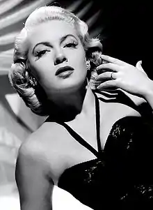 When Turner was discovered, MGM executive Mervyn LeRoy envisioned her as a replacement for the recently deceased Jean Harlow and began developing her image as a sex symbol.[306] In They Won't Forget (1937) and Love Finds Andy Hardy (1938), she embodied an "innocent sexuality" portraying ingénues.[307] Film historian Jeanine Basinger notes that she "represented the girl who'd rather sit on the diving board to show off her figure than get wet in the water ... the girl who'd rather kiss than kibbitz".[51] In her early films, Turner did not color her auburn hair—see Dancing Co-Ed (1939), in which she was billed "the red-headed sensation who brought "it" back to the screen".[308] 1941's Ziegfeld Girl was the first film to showcase Turner with platinum blonde hair, which she wore for much of the remainder of her life and came to be known for.[309]