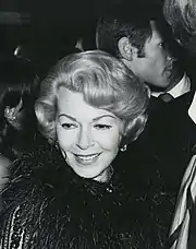 According to her daughter, Turner's obsessive attention to detail often resulted in dressmakers storming out during dress fittings.[322] No matter the setting, Turner also took measure to ensure she was always "camera-ready", wearing jewelry and makeup even while lounging in sweatpants.[323] Turner often purchased her favorite styles of shoes in every available color, at one time accumulating 698 pairs.[324] She favored the designers Salvatore Ferragamo, Jean Louis, Helen Rose and Nolan Miller.[322][325] Film historians Joe Morella and Edward Epstein have observed that, unlike many female stars, Turner "wasn't resented by female fans", and that women made up a large part of her fan base in later years.[326] Turner maintained her glamorous image into her late career; a 1966 film review characterized her as "the glitter and glamour of Hollywood".[4] While she consistently embraced her glamorous persona, she was also vocal about her dedication to acting[119] and attained a reputation as a versatile, hard-working performer.[11] She was an admirer of Bette Davis, whom she cited as her favorite actress.[218]