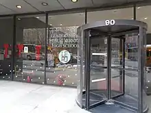 Notable in Leadership's history is the effects of the September 11 attacks. Leadership, a block south of the South Tower[1] along with its neighbor school (Economics and Finance) found it necessary to evacuate after the second plane hit. The engine of the second plane landed on Leadership's roof, and the school building itself was used as one of the morgue sites in the aftermath. The day of the attack, however, Principal Dolch was on the street welcoming voters to the school's polling booths and thus was on the street when the first plane hit. She suspected immediately that her sister, a Cantor Fitzgerald employee, very likely hadn't survived the first attack and focused on evacuating students and teachers safely.
