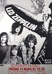 ![]() Poster for Led Zeppelin's concert at Stockholm, used to help promote its 1969 tour of the U.K. and Scandinavia | |