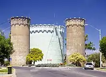 Leeton has a number of town landmarks, including the Roxy Theatre, War Memorial, Madonna Place, St Peter's Church, and the historic Hydro Motor Inn which are located in the centre of town. The Burley Griffin water towers located on Chelmsford Place are an iconic feature of the town.