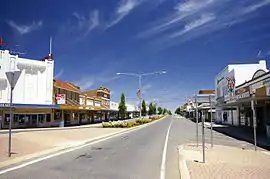 Leeton's main shopping areas include Pine Avenue and Kurrajong Avenue, as well as the town's two shopping complexes, Leeton Market Plaza (opened in 2006)[41] and the Woolworths & Target Complex on Wamoon Avenue.[42][43] Other retailers include: Best & Less,[44] Aldi,[45] The Reject Shop,[46] IGA,[47] EB Games, St. Vincent de Paul's and McDonald's.[48]