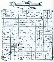 Leota Township was first settled by Dutch farmers who migrated northward from another Dutch Settlement in Orange City, Iowa. Organization of Leota Township was approved by the Nobles County Board on March 18, 1879. The first township meeting was held on April 5, 1879. The story has it that Leota was the name of a young Indian woman who figured in a romantic story familiar to W. G. Barnard, one of the township's first residents. However existence of such a story cannot be verified. If true, Leota Township (and the village of Leota) are the only place names in all of Nobles County that memorialize specific Native Americans.[3]