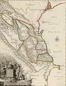 In the 4th century BC, the numerous tribes speaking Lezgic languages united in a union of 26 tribes, formed in the Eastern Caucasus state of Caucasian Albania, which itself was incorporated in the Persian Achaemenid Empire in 513 BC.[7][8] Under the influence of initially Persian but also Parthian rule Caucasian Albania was divided into several areas — Lakzi, Shirvan, etc.