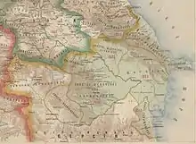 In 1813, as a result of the Treaty of Gulistan, the Russians gained control over southern Dagestan and most of what is the contemporary Azerbaijan Republic.[13] The 1828 Treaty of Turkmenchay indefinitely consolidated Russian control over Dagestan and other area's where the Lezgins lived and removed Iran from the military equation.[14][13] The Russian administration subsequently created the Kiurin Khanate, later to become the Kiurin district. Many Lezgins in Dagestan, however, participated in the Great Caucasian War that started roughly during the same time the Russo-Persian Wars of the 19th century were happening, and fought against the Russians alongside the Avar Imam Shamil, who for 25 years (1834–1859) defied Russian rule. It was not until after his defeat in 1859 that the Russians consolidated their rule over Dagestan and the Lezgins.