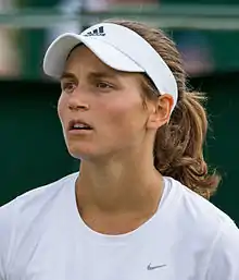 Liechtenstein received an invitation from the Tripartite Commission to send London 2012 Olympian Stephanie Vogt (world no. 274) in the women's singles for her second time into the Olympic tennis tournament.[16][2] In the round of 64, Vogt lost both sets, losing the first 3–6 and the second 1–6 against Johanna Konta of Great Britain. Konta reached the quarterfinals after she beat Svetlana Kuznetsova of Russia in the third round, but was knocked out in the last eight by Angelique Kerber of Germany.[17][18] Following the loss, Vogt announced that she would pause her tennis career and enroll in the Swiss Federal Institute of Technology in Zürich.[19]