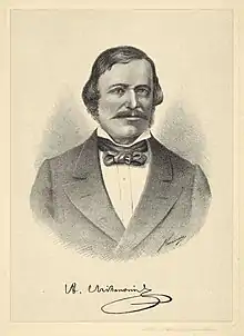 The original lyrics were written by Antun Mihanović and first published under the title "Horvatska domovina" ("Croatian homeland") in 1835.[2] In 1846, the Austrian composer Josip Runjanin (1821–1878) composed the music for "Horvatska domovina".[2] Runjanin's army bandmaster Josip Wendl adapted his music for a military brass orchestra.[2] The original form of the melody is unknown because the original has not been recovered to this day.[3]