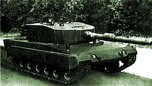 In 1984, the Spanish Ministry of Defense declared its intent to set aside 120 billion pesetas (1.1 billion U.S. dollars) for a future tank program and attracted interest from five foreign companies.[7] German company Krauss-Maffei and Spanish company Santa Bárbara presented a joint bid in mid-1984 that would produce a tank based on 1970s technology. The French government proposed to cooperate with Spain in designing a tank complete with new technology—France would later develop this programme on its own as the AMX-Leclerc. However, the French admitted that there would be restrictions placed on Empresa Nacional Santa Bárbara when it came to exporting the tank.[8] The Italian government proposed a similar deal for a cooperative tank design. The American company General Dynamics and British company Vickers offered the M1 Abrams and Valiant, respectively; the Spanish government rejected their offers the following year because of the low likelihood of local production and export of the tank. By late 1985, the only offers still under consideration were those from the German-Spanish collaboration and the French and Italian governments.[9]