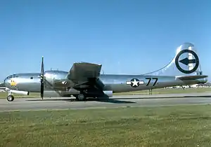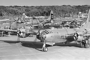 The last B-29 was delivered by Boeing-Wichita (B-29-100-BW, 45-21872) in September 1945.[4] 21872 was converted to a WB-29; being destroyed in a crash on 25 September 1953 near Eielson AFB, Alaska, when assigned to the 58th Strategic Reconnaissance Squadron (Medium), Weather.[5][6]