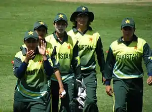 A women's Twenty20 International (T20I) is a 20 overs-per-side cricket match played between two representative side, each with WT20I status as approved by the International Cricket Council (ICC).[1] The first women's T20I match was held in August 2004 between England and New Zealand.[2] The Pakistan national women's cricket team played its first T20I match at the Vineyard, Dublin in 2009, losing to Ireland by 9 wickets.[3]