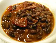 Lobio is a family of dishes of various kinds of prepared beans (cooked or stewed), containing coriander, walnuts, garlic and onion, popular item in the cuisines of the South Caucasus nation of Georgia.[3]