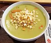 Split pea soup is typically prepared with dried peas, such as the split pea. It is, with variations, a part of the cuisine of many cultures.