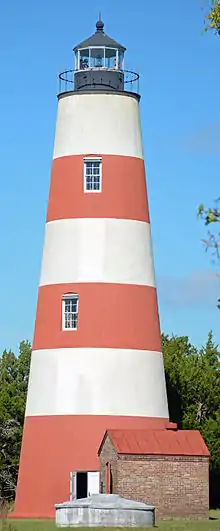 The earliest lighthouse in the state was erected in 1736; the oldest surviving tower is the Sapelo Island Light, though the present Tybee Island Light, erected in 1867, incorporates the base of its 1773 predecessor.[1] The last lighthouse in the state, the Savannah Light, was constructed in 1964.[1]