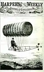 C.F. Ritchel of Bridgeport riding his dirigible, as seen on the July 15, 1878 cover of Harper's Weekly