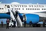Air Force One was wheels down at Reading Regional Airport at 3:19 p.m. after a very short flight from Newton.