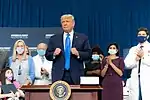 | Phoenix | May 5 | Arriving via Phoenix Sky Harbor International Airport, President Trump traveled to the Honeywell Aerospace headquarters in Phoenix to tour the factory where they produced N95 masks and to discuss the re-opening of the country amid the coronavirus pandemic.[54] President Trump also held a roundtable discussion on supporting Native Americans. | ![]() | |