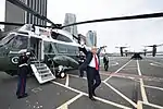 | Davos | January 21–22 | Arriving via Zürich Airport, President Trump flew to Davos on Marine One, landing at the Intercontinental Davos Landing Zone. He stayed at the InterContinental Davos.[9] He attended the World Economic Forum, where he spoke on January 22. He held bilateral meetings with European Commission president Ursula von der Leyen, Swiss president Simonetta Sommaruga, Pakistani prime minister Imran Khan, Iraqi Kurdish president Nechirvan Barzani and Iraqi president Barham Salih.[10] | ![]() | |