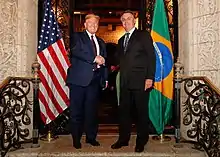 | Mar-a-Lago, West Palm Beach | March 6–9 | Arriving via Palm Beach International Airport, President Trump traveled to Mar-a-Lago for the weekend. He traveled to the Trump International Golf Club to play golf on March 7 and 8.[50] President Trump hosted President of Brazil Jair Bolsonaro at Mar-a-Lago on March 7.[51] | ![]() | |