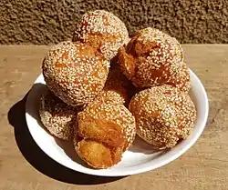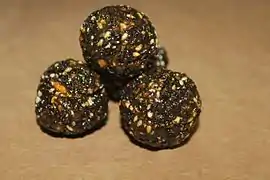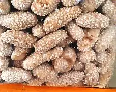 - Sesame-seed candy – a confection of sesame seeds and sugar or honey pressed into a bar or ball, it is popular from the Middle East through South Asia to East Asia.