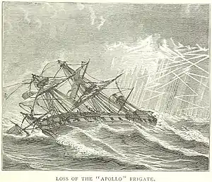 | Fanny | The ship struck a rock and sank at Waterford.[30] |