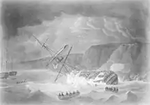 | Ethalia or Ethalion | The ship was driven ashore at Flamborough Head, Yorkshire and was wrecked.[33][38] | |