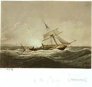 | Prince of Wales | The ship struck the Giant's Stairs Rocks, Cork and sank.[22] She was on a voyage from Cork to London.[21] |