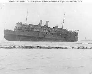 | USS Narragansett | ![]() USS Narragansett The troopship ran aground in the English Channel off Bembridge, Isle of Wight, United Kingdom. Over 3,500 people were successfully evacuated from the ship.[30] She was refloated on 17 February.[31] |