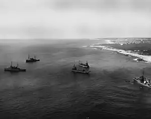 | ex-USS Huron | The floating breakwater, formerly the armored cruiser USS South Dakota (later renamed USS Huron) ( | |
