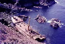 | Point Law | ![]() Point Law on the rocks in Alderney, Channel Islands in 1975. The coastal tanker ran aground on the south west coast of Alderney, Channel Islands. Her crew were rescued by the St Peter Port Lifeboat, Alderney Fire Brigade, a cliff rescue team and a French helicopter.[21] |