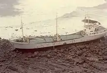| Ranga | ![]() The remains of Ranga in 2006. The container ship lost engine power during a storm. She went aground at Dunmore Head, on the Dingle Peninsula, County Kerry, Republic of Ireland. All crew members were rescued by breeches buoy and a Royal Air Force helicopter. The ship was a total loss, and the bow and other remains are visible today. |