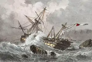 | Superbe | ![]() Superbe. The Téméraire-class ship of the line ran aground and was wrecked at Naoussa, Paros, Greece with the loss of nine of her 602 crew.[44][45][46] |