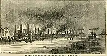 | Belle Isle | St. Louis Fire: The steamboat was destroyed by a fire that spread to her from the drifting steamboat Edward Bates after the burning Edward Bates collided with her while she was moored on the Mississippi River at St. Louis, Missouri.[34][36] | |