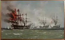 | SMS Radetzky | Second Schleswig War, Battle of Heligoland: The Radetzky-class frigate was damaged in battle off Heligoland with the loss of five of her crew.[35] | |