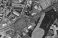This is a list of traffic circles in New Jersey. The U.S. state of New Jersey at one point had a total of 101 traffic circles, 44 of which were part of state roads. However, the number has shrunk as traffic circles have been phased out by the New Jersey Department of Transportation.[1][2] In the 1920s and 1930s, New Jersey felt that traffic circles were an efficient way for moving traffic through three or more intersecting roads.[1] Built in 1925, the first traffic circle in New Jersey was the Airport Circle in Pennsauken.[3] Many of these interchanges are rotaries in design, as opposed to the more successful modern roundabout.