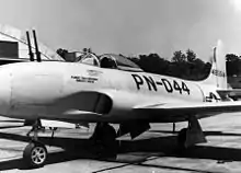 The Lockheed P-80 Shooting Star was the first jet fighter used operationally by the United States Army Air Forces (USAAF).[1] Designed and built by Lockheed in 1943 and delivered just 143 days from the start of the design process, production models were flying, and two pre-production models did see very limited service in Italy just before the end of World War II. Designed with straight wings, the type saw extensive combat in Korea with the United States Air Force (USAF) as the F-80.