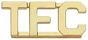 | Trooper First Class | The insignia for this rank consists of a gold-colored 'TFC' collar pin worn on the wearer's right lapel. Troopers who complete five (5) years of satisfactory or exceptional service are promoted to the rank of Trooper First Class. | |