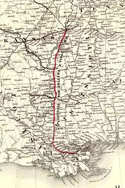 The Louisville, New Orleans and Texas Railway was built between 1888 and 1890 and was admitted to the Illinois Central Railroad system in 1892. It ran between Memphis, Tennessee, and New Orleans, Louisiana, through Vicksburg, Mississippi, and Baton Rouge.