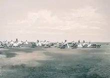 Paul Kane, an Irish-born Canadian painter, witnessed and participated in the Métis buffalo hunt of 1846.[17] Several of his paintings depict scenes of this hunt in the Sioux lands of the Dakota Territory in the United States of America.