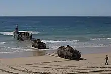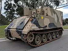 A formal Weapons and Equipment Policy Statement specifying the Army's requirements for tracked APCs was issued on 26 June 1960.[10] This document was very similar to a British War Office Policy Statement issued in the late 1950s.[11] It called for the Army to acquire tracked APCs that were amphibious and could be carried by aircraft.[12] These vehicles were to replace the Army's wheeled scout cars and APCs which had been purchased in the 1950s, as well as obsolete armoured fighting vehicles (AFVs) dating from the Second World War.[12][13] It was believed that the wheeled armoured vehicles were no longer suitable, as the Australian Army expected that it would need to fight in tropical conditions in South East Asia. Tracked vehicles were preferred for these conditions as they had superior off-road performance, including in jungle terrain.[14] The statement specified that the new vehicles would be used to equip the Army's APC, armoured and reconnaissance units.[15] At this time the Army did not include any mechanised infantry units which were permanently issued APCs, and separate APC-equipped units were used to provide protected transport for light infantry.[16][17]