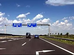 The M3 motorway (Hungarian: M3-as autópálya) is a Hungarian motorway connecting Budapest to Nyíregyháza. It will eventually connect Budapest to the Ukrainian border. Two other motorways branch off it, the M30 (connecting the M3 to Miskolc) and the M35 (connecting the M3 to Debrecen). The M3 follows the route of route 3, and, later, route 4. The section of the motorway, the one between Görbeháza and Nyíregyháza was opened to the public in August 2007. The latest section of the motorway, the one between Highway 49 and Vásárosnamény was opened to the public in 2014.[1] The total length of the motorway now is 281 km.