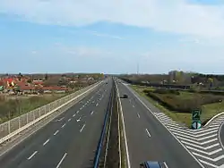 The M5 motorway (Hungarian: M5-ös autópálya) is a Hungarian motorway which connects Budapest with the south-eastern regions of the country, the cities of Kecskemét, Szeged, and finally Röszke on the Serbian border. The motorway reached the city of Szeged in December 2005, while the remaining portion (between Szeged and Röszke) was completed in April 2006.