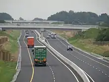 Construction of this 16 km scheme started in December 2007. The section opened to traffic on 25 May 2009, some nine months ahead of the original target completion date.[19] Like the Cashel-Cullahill project, the Fermoy-Mitchelstown scheme was redesignated a motorway during its construction, having originally been envisaged as a HQDC.[20] It was built by Roadbridge Ltd. at a cost of €174 million.[19][21]